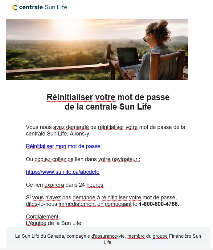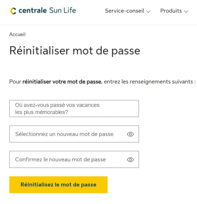 Étape 5 : Vous recevrez un message vous confirmant que votre mot de passe a été changé. Allez maintenant à la page d’accueil de la Centrale Sun Life et connectez-vous à l’aide de votre code d’accès et de votre mot de passe.