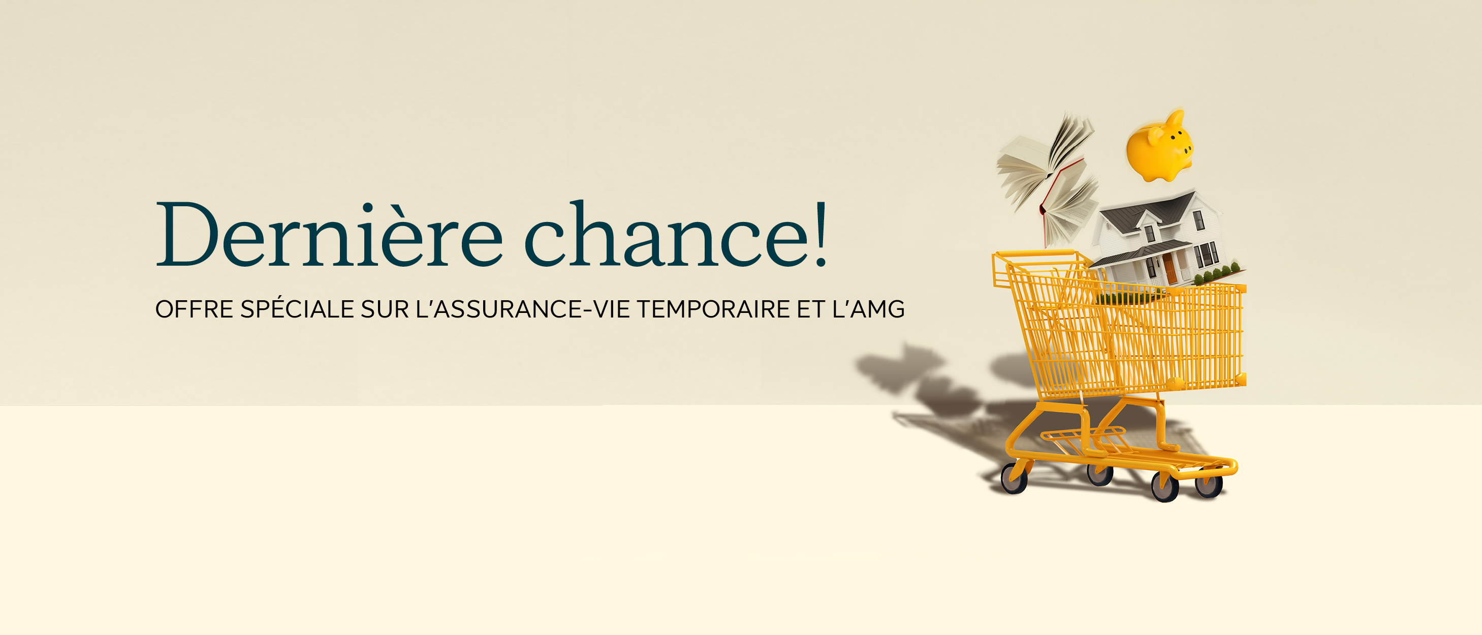 Important! Pour profiter de l’offre spéciale d’assurance temporaire et d’AMG, vous devez soumettre les propositions dans Demande en direct au moyen de la fonctionnalité pour les offres groupées au plus tard à 23 h 59 HE le 27 février 2026. Si une proposition seulement a été commencée avant l’heure limite, mais a été terminée après, les produits ne seront pas établis à titre d’offre groupée et la remise de prime pour l’AMG ne sera pas offerte au Client ou à la Cliente.