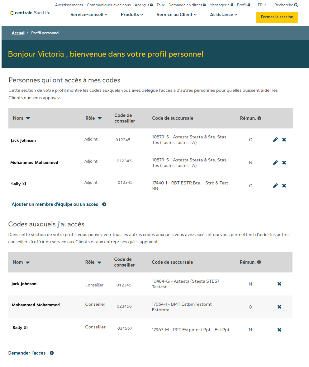 Nous avons récemment apporté plusieurs changements à la Centrale Sun Life, comme l’amélioration du profil et l’ajout du tableau Mes codes et de l’onglet Mon équipe. Voici les nouveautés sous Mon équipe pour les accès ainsi que les changements requis pour les renseignements personnels afin que vous viviez la meilleure expérience possible.